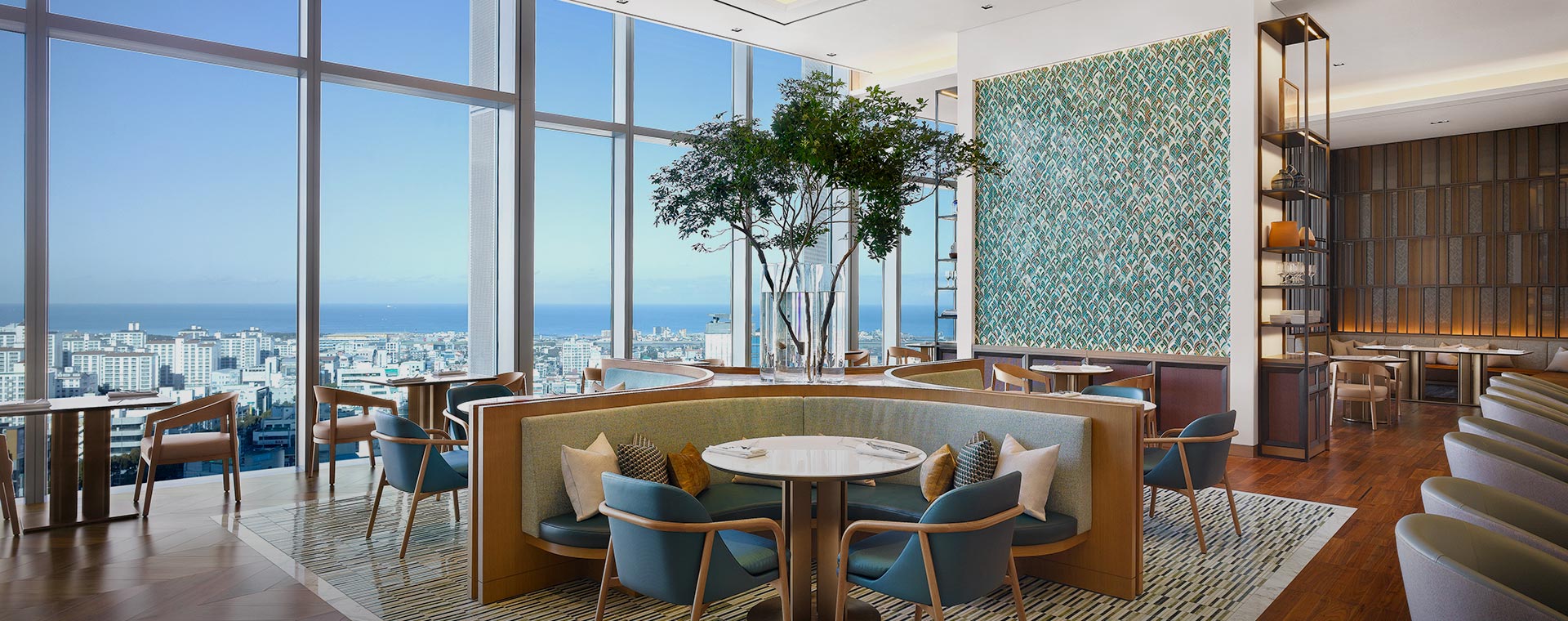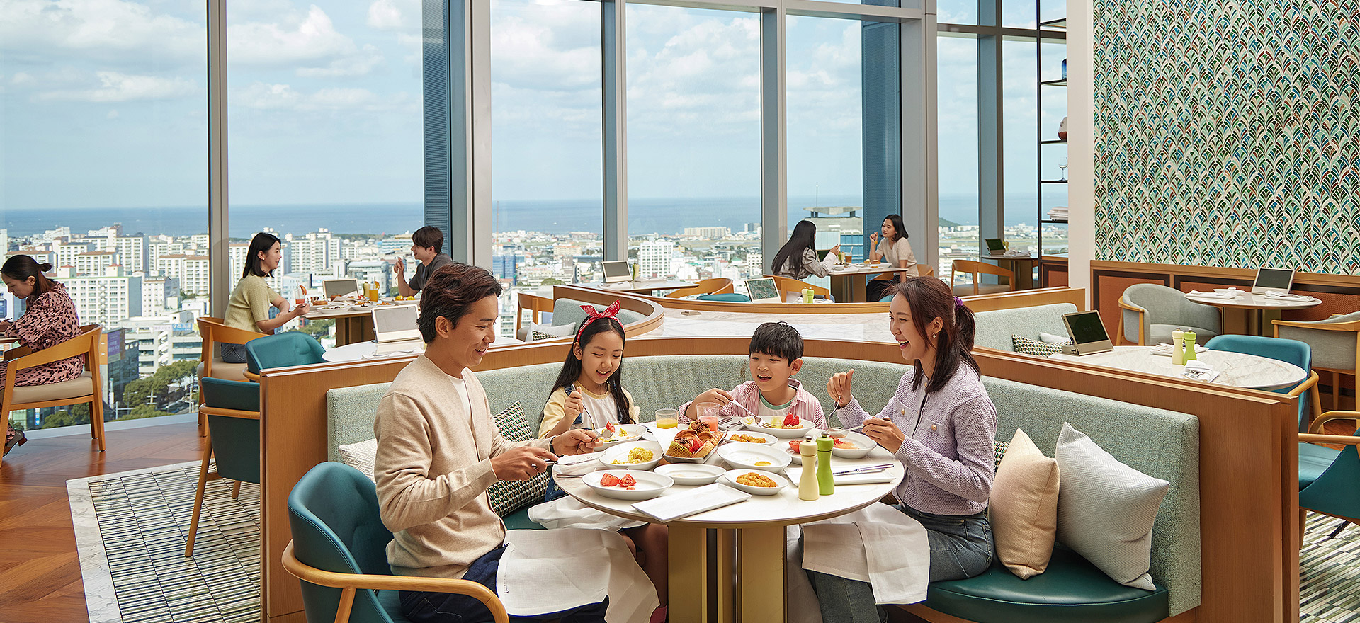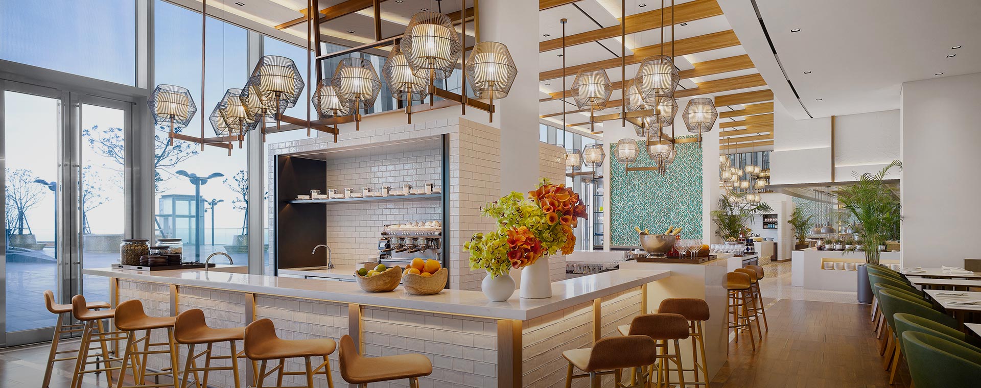 通透的落地窗将济州温暖的阳光与泳池美景尽收眼底,为您的用餐体验增添一抹别致。 白天,餐厅沐浴在明亮活泼的氛围之中;夜晚,浪漫的橙色晚霞成为绝美背景。 无论何时,您都可尽情享用咖啡8的招牌美食,佐以精选葡萄酒或鸡尾酒,开启一段难忘的美食之旅。