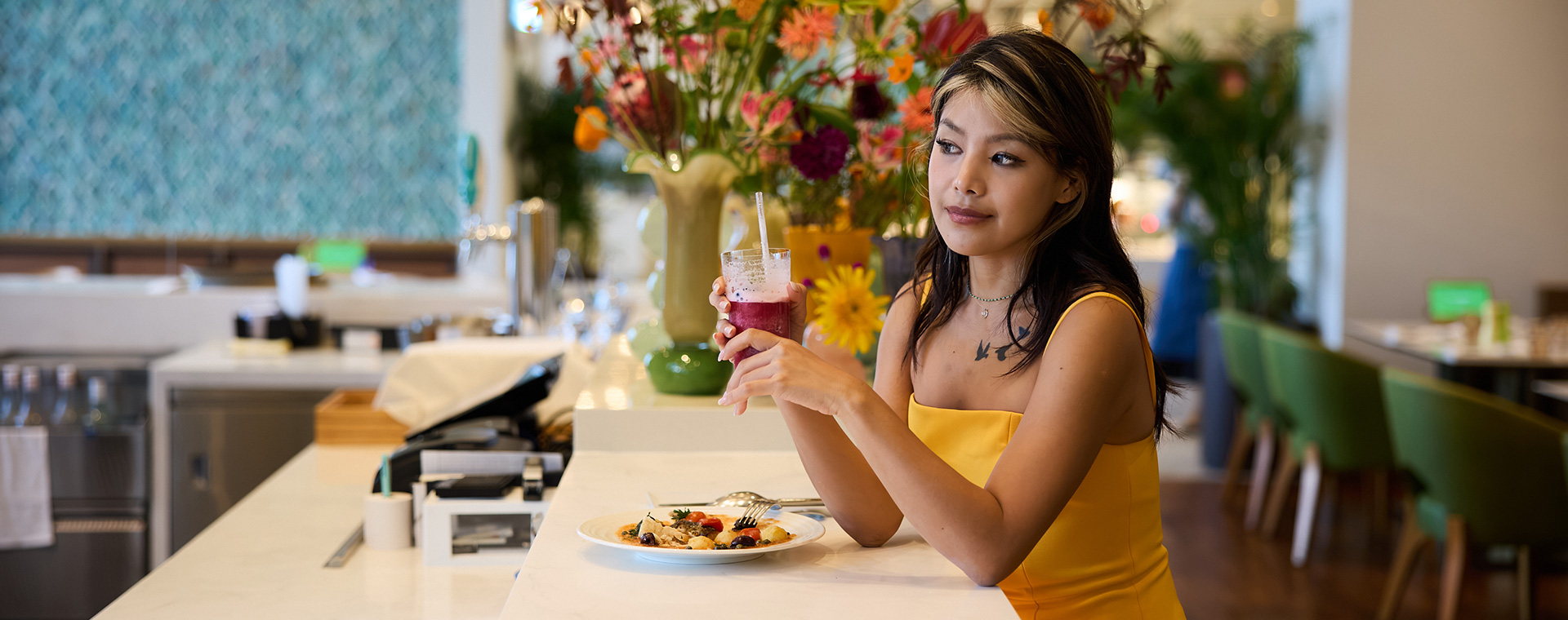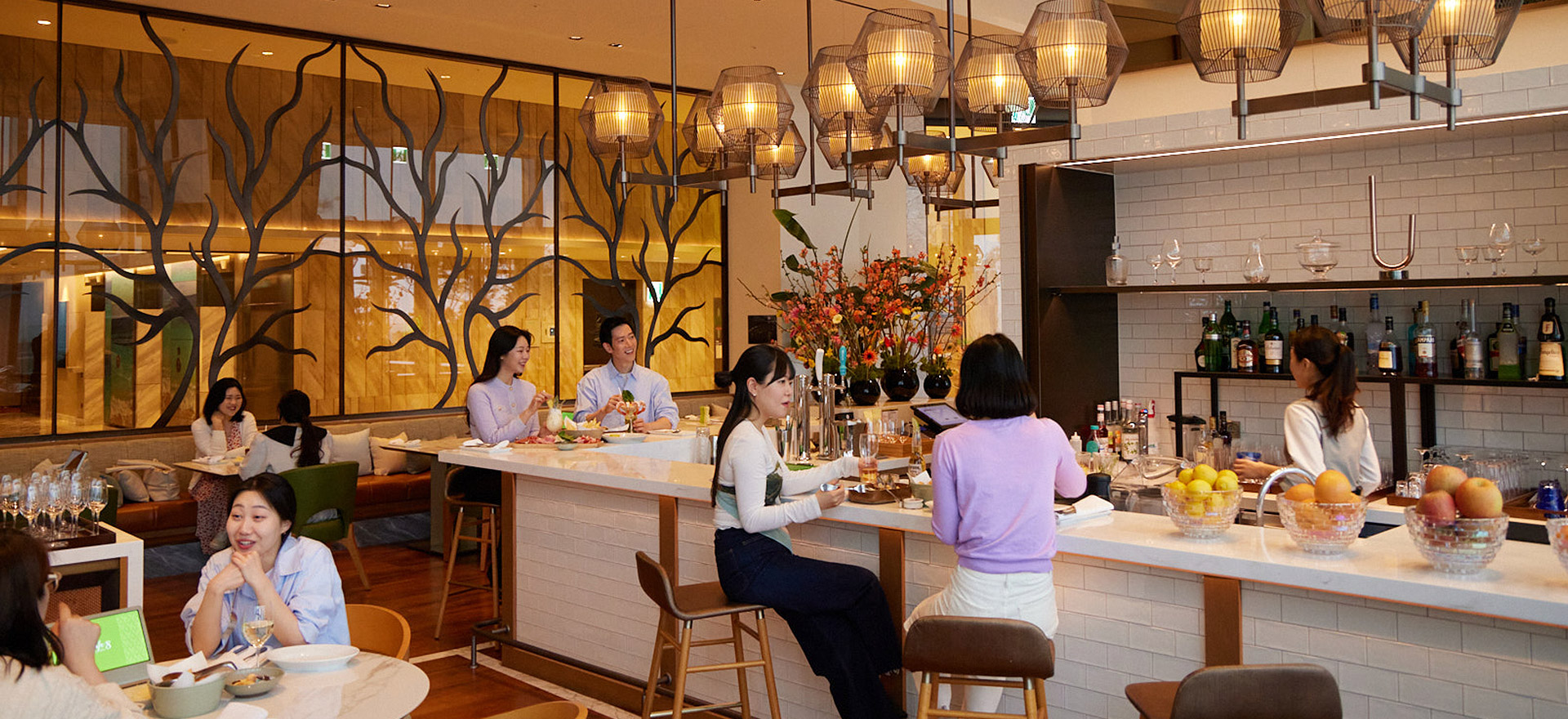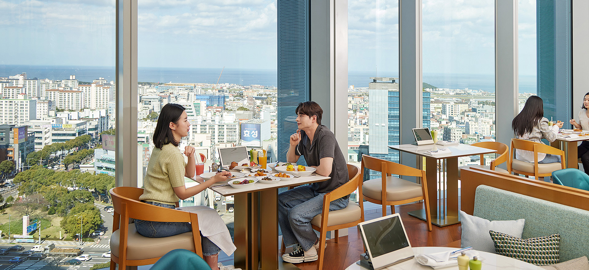 通透的落地窗将济州温暖的阳光与泳池美景尽收眼底,为您的用餐体验增添一抹别致。 白天,餐厅沐浴在明亮活泼的氛围之中;夜晚,浪漫的橙色晚霞成为绝美背景。 无论何时,您都可尽情享用咖啡8的招牌美食,佐以精选葡萄酒或鸡尾酒,开启一段难忘的美食之旅。