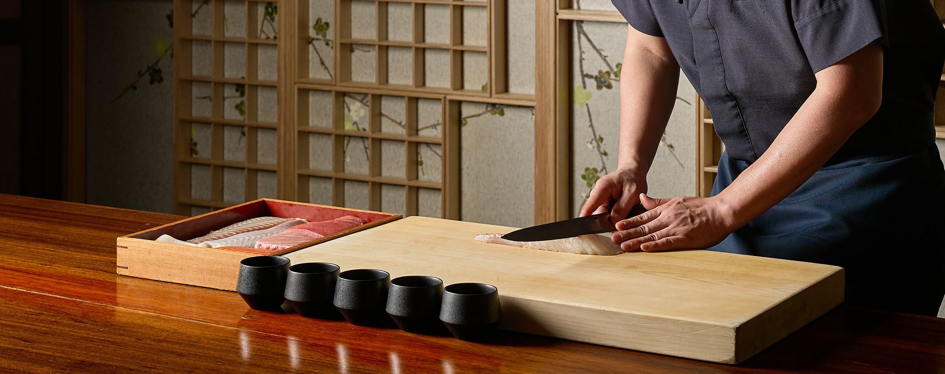 "韓国内外の5つ星寿司店を成功に導いてきたマスター寿司職人、パク・ボンジンシェフが、新鮮な旬の素材が持つ本来の味を活かした極上寿司を、心を込めて握ります。"